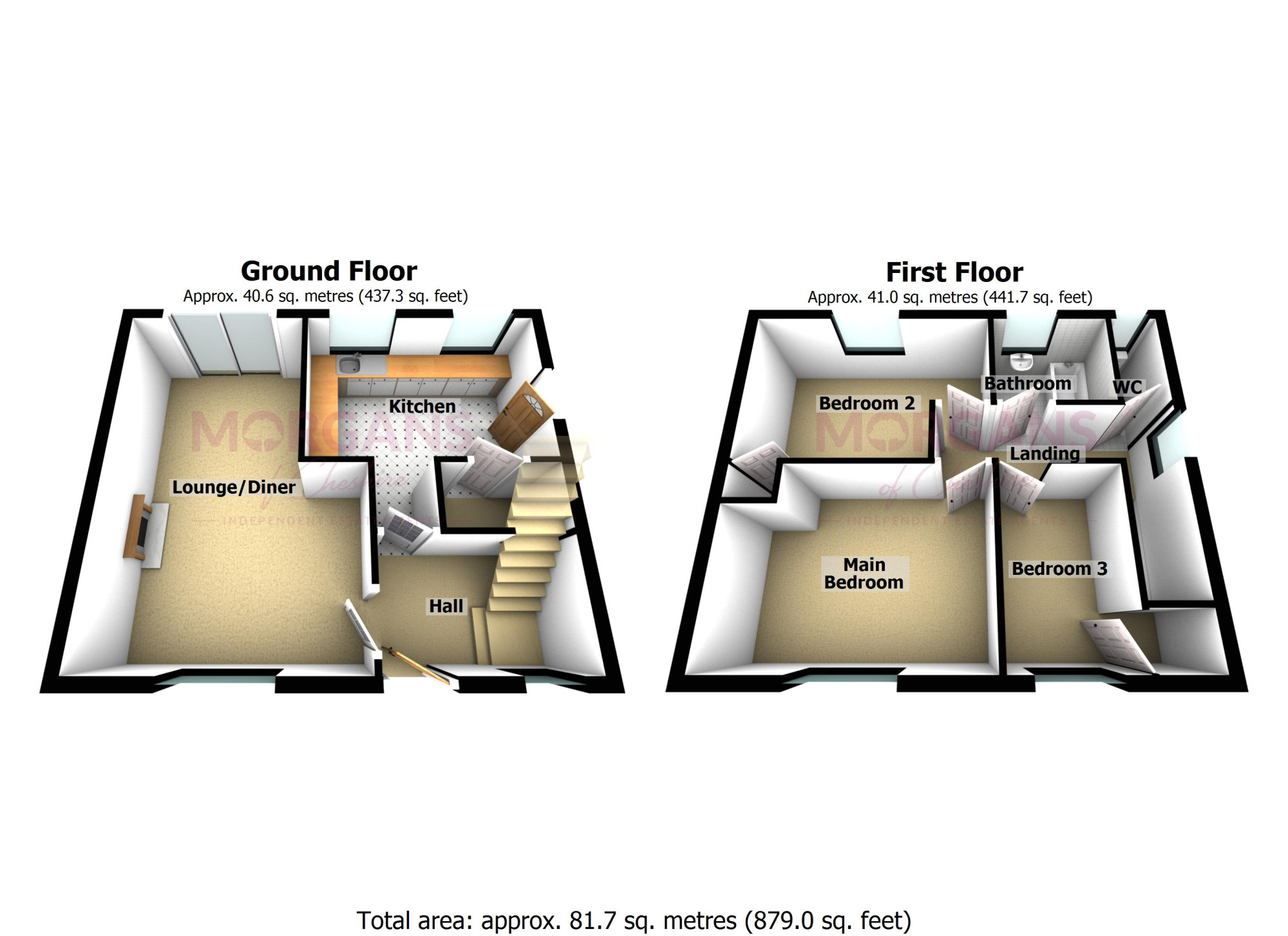 A modern family bathroom serves the floor, featuring contemporary fittings and clean, fresh décor. The convenience of a separate WC ensures smooth-running mornings and added privacy.