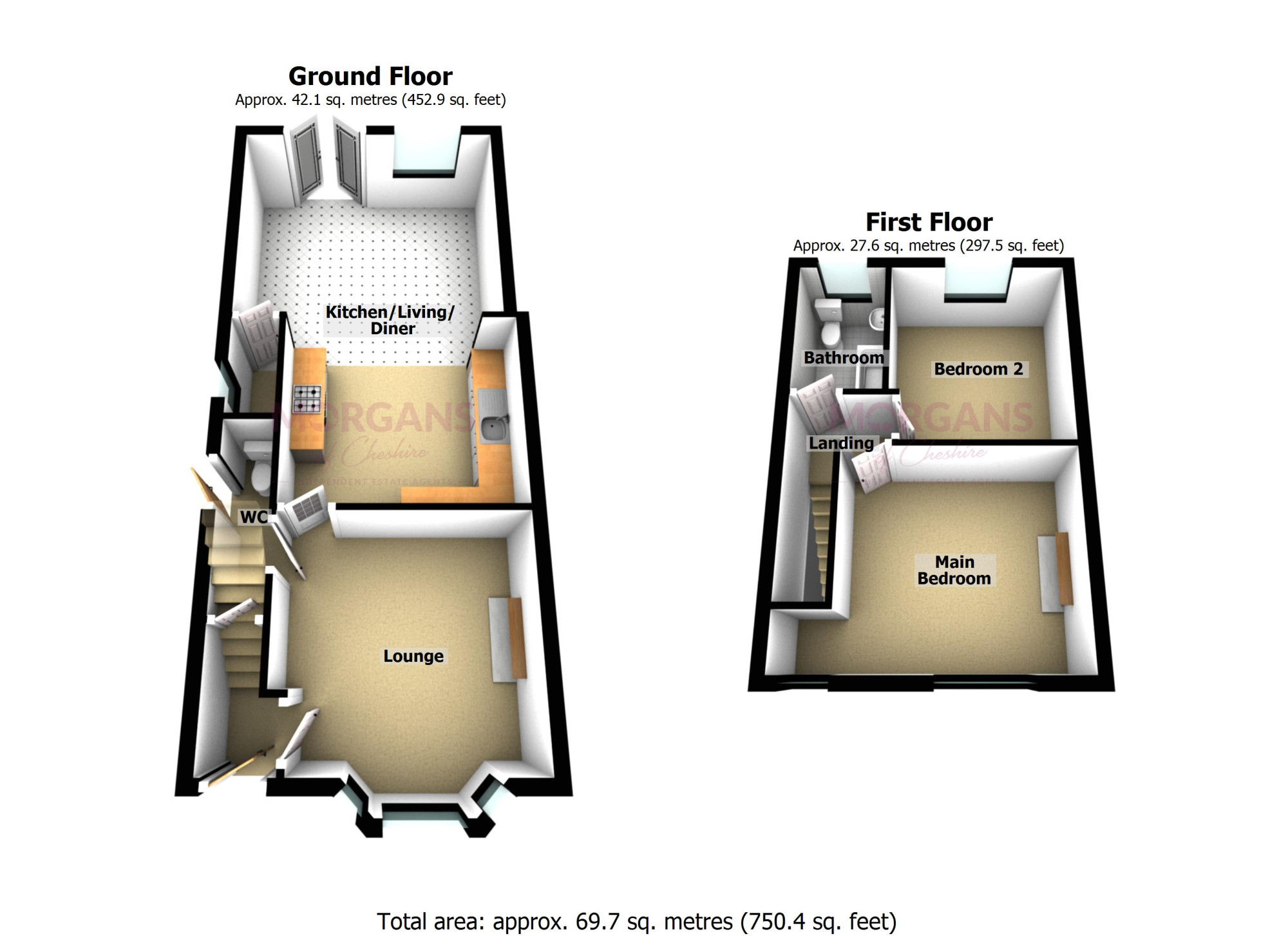 Upstairs, the home offers two genuine double bedrooms, each beautifully decorated and full of natural light. The stylish family bathroom completes the floor with its contemporary finish and calming feel.