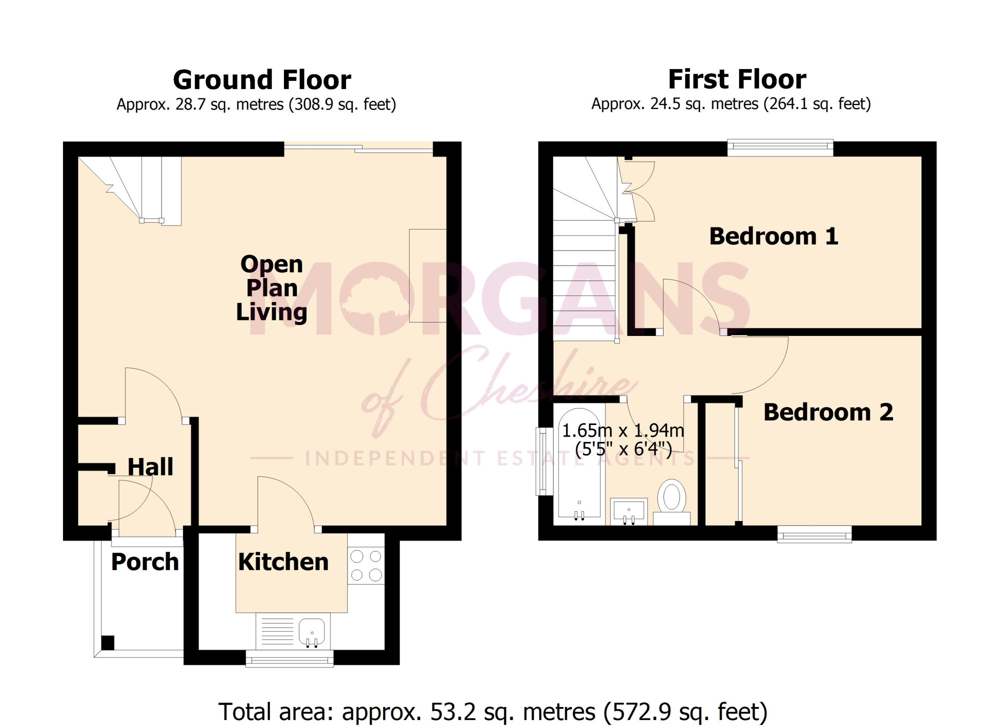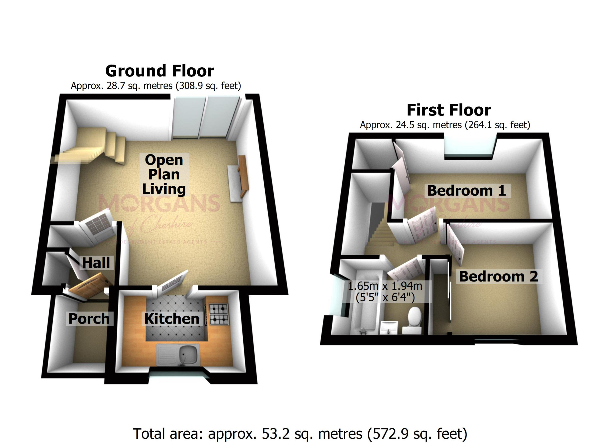 Upstairs, you’ll find two generous double bedrooms, both calm, well-proportioned and finished in neutral tones to suit any style. A modern family bathroom completes the first floor, offering a fresh and timeless space to unwind.
