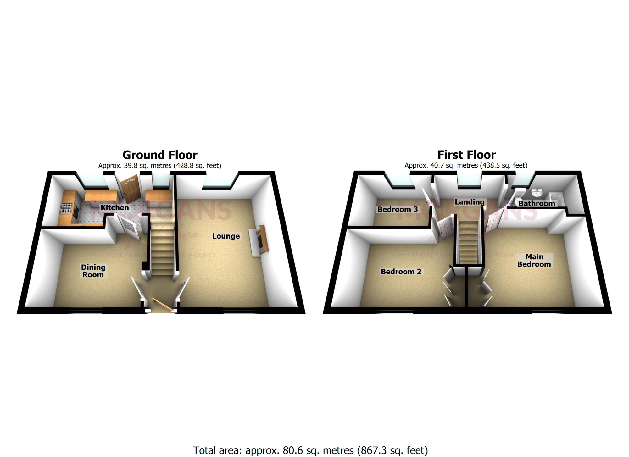 Upstairs, the property continues to impress with three well-proportioned bedrooms, including two comfortable doubles and a generous single, ideal as a child’s bedroom, nursery, or home office. The family bathroom has been stylishly appointed to complement the home’s modern feel.