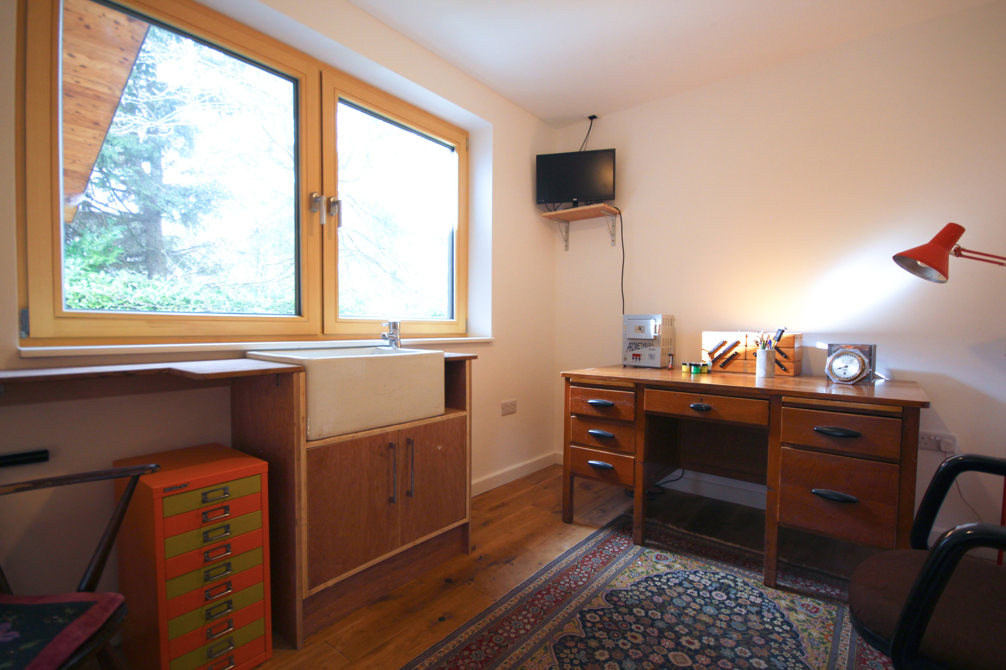 At the very top of the home, the second floor unveils a superb guest suite, including a 'Mondrian' inspired shower room, of impressive proportions. Cleverly designed with flexibility in mind, it offers the potential to subdivide and create an additional bedroom if desired.