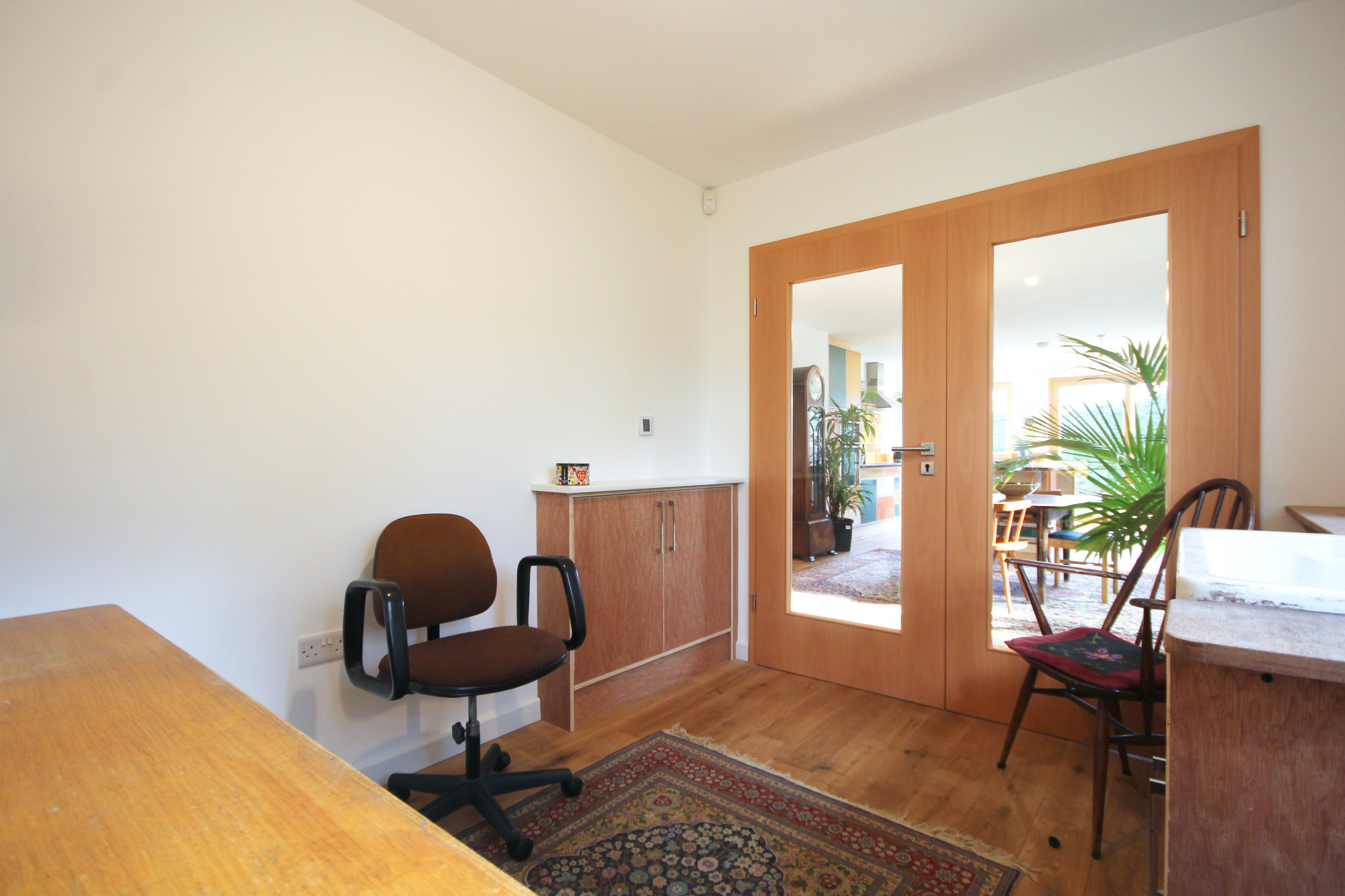 Ascending further, the first floor introduces an eclectic and beautifully hand-crafted open-plan reception kitchen - rich in character and individuality, with direct access to a balcony overlooking the gardens. This level is as practical as it is inspiring, featuring a generous utility room, a dedicated study, two well-proportioned double bedrooms, and a striking family bathroom adorned with distinctive, joyful, tiling.