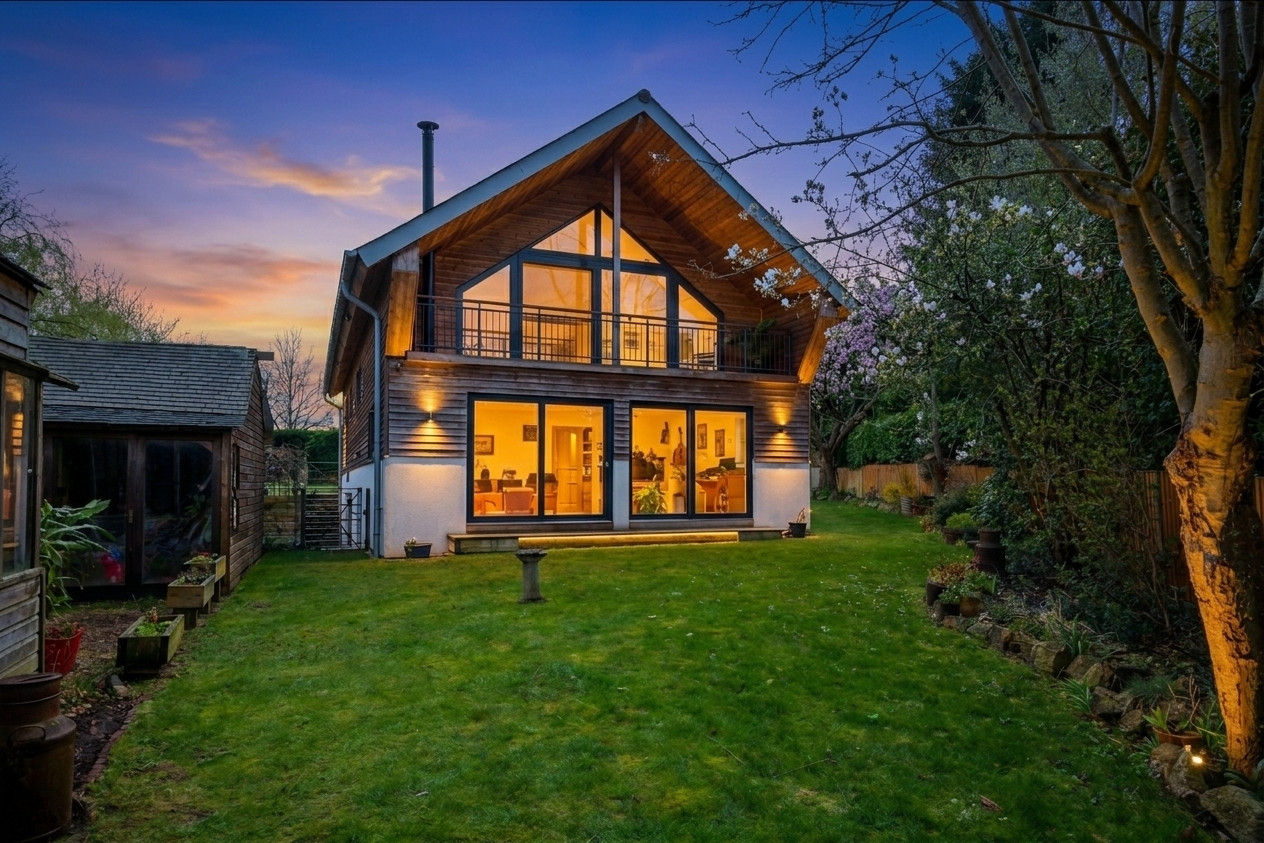 Completed in 2019 with astonishing efficiency - constructed in just two months, with a further four months devoted to the refined interior, this home replaces the original family residence that stood here for decades, reimagined into a bold, contemporary masterpiece. Extending to approximately 2,500 sq ft of beautifully curated living space, plus an additional 1,000 sq ft basement level, Elm Bank offers exceptional scale, versatility, and future potential.